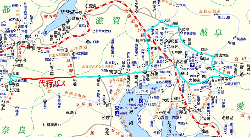 鉄・2012年[関西中部] 往路は名古屋まで東海道新幹線です。帰路は名松線を巡り、名古屋から新幹線の予定でしたが、最終日の朝から集中豪雨となり、ダイヤが大幅に乱れ、関西本線加茂駅から柘植駅までは代行バスとなりました。 亀山駅で長時間の足止めとなり、予定を大幅に変更し、亀山散策をして、養老鉄道で大垣に出て、岐阜から高山本線で美濃太田、太多線で多治見、中央本線で名古屋へと向かいました。 コメントは受け付けていません。