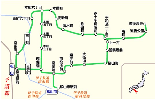 1日目 成田→(空路)→松山→(伊予鉄道市内線)→松山城→湯築城跡・道後温泉→(市内線乗りつぶし)→松山