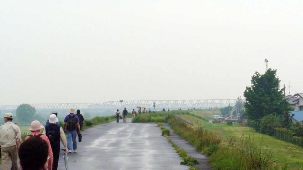 取手 投稿日: 2007-05-20 05:40 愚呑 久しぶりに駅ハイに参加してきました。 今回は茨城県取手市です。千葉県とは利根川を挟んだ隣町です。 その昔は水戸徳川家の宿場町だったそうです。本陣後も見学して参りました。 歩き始めて30分ほどで雨が降り出し、生憎の天気でしたが利根川沿いの4キロの 土手歩き時には雨もあがり、暑くもなくまずまずの陽気でした。 右手が取手市街、正面の陸橋はJR常磐線。延々4キロ歩く。 📂投稿グループ 日々楽々