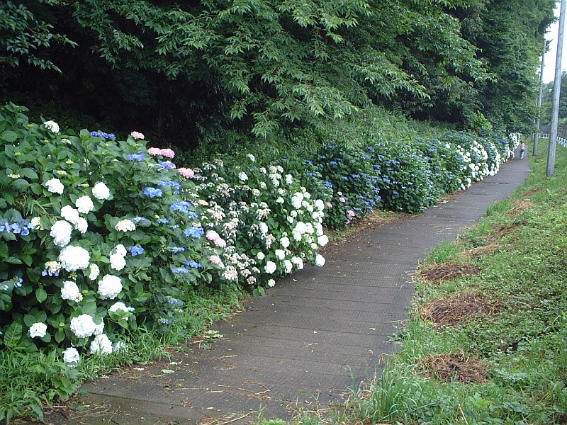 紫陽花 投稿日: 2007-06-11 08:29 愚呑 毎年、この季節は紫陽花並木を歩きます。 春は桜並木がこの手前にあり、四季折々花を愛でながら歩いています。 夕暮れの京葉道路宮野木ジャンクションです。左手道路が紫陽花が咲いている通りです。 正面は東関東自動車道。土日は下り(画像右車線)がいつも大渋滞です。 こちら方面から歩いて行きます。左手が京葉道路です。 およそ400mほど続いています。 冬の夕方は真っ暗でしたが2年ほど前に街灯が設置されました。 最近、朝夕明るい時間帯は”犬連家の一族”が多くなりました。 📂投稿グループ 日々楽々