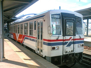 佐世保駅は港のすぐ側です。松浦鉄道の乗り場はJRと同じホームです。客3人で発車しました。