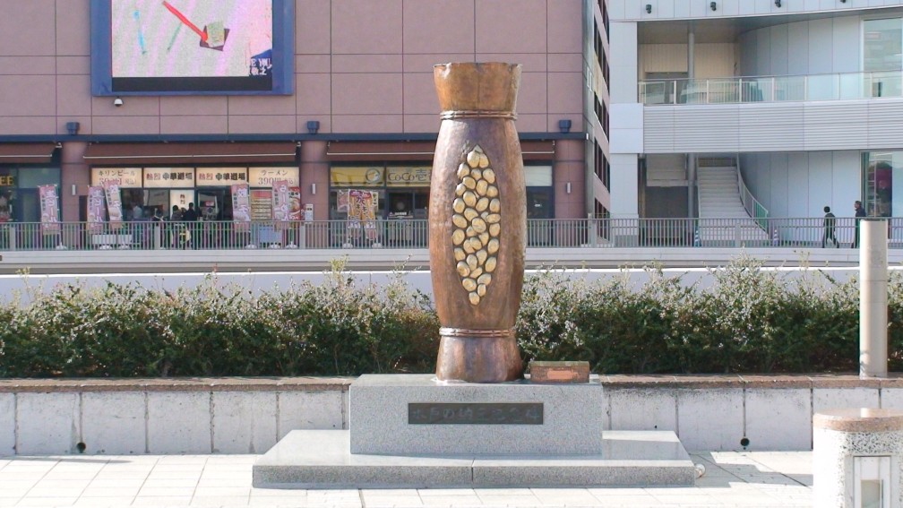 肌寒い中、水戸駅の納豆の像に見送られてスタート。