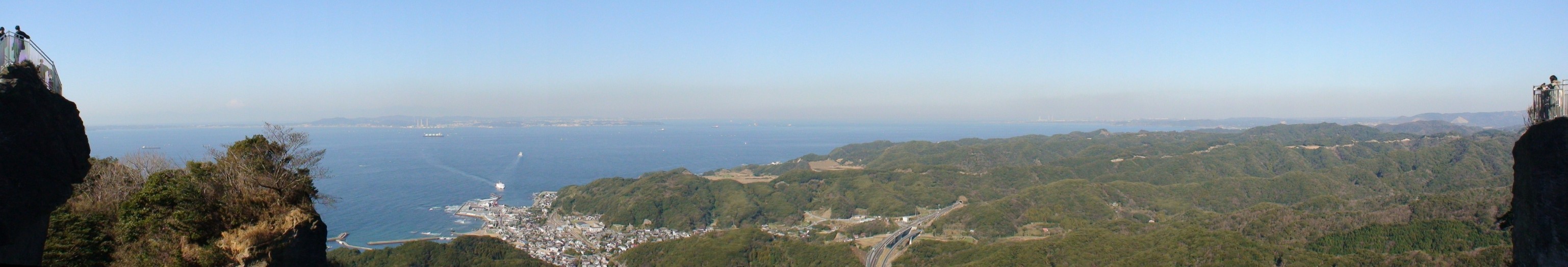 遠くに富士山、東京湾を横断するフェリー、遠方には東京湾観音まで見えました。