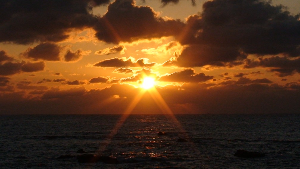 日の出は6時45分、水平線は雲で覆われていましたので、この日の出を迎えたのは7時前でした。