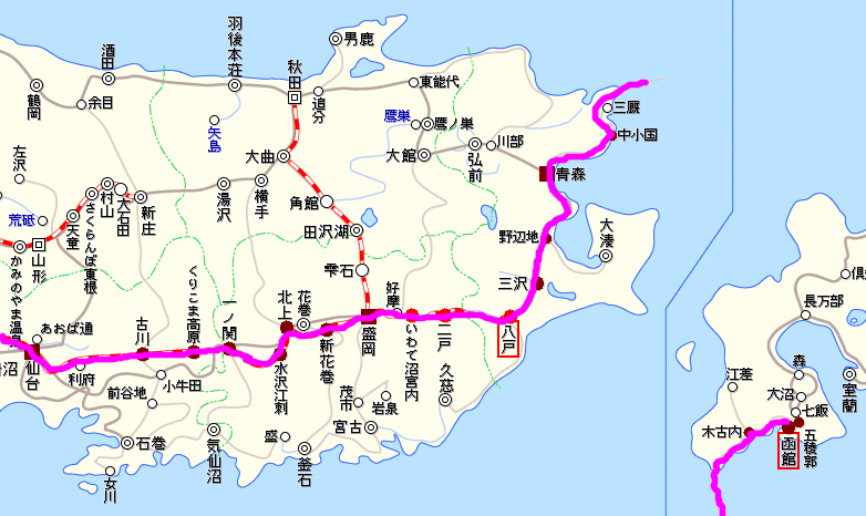 はやて3号は東京-上野-大宮-仙台-盛岡-八戸