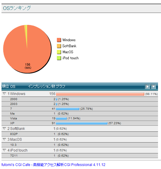 凄い勢いだ。 投稿日: 2009-11-02 16:34 愚呑 Windows7の勢いは凄いです。 Vistaが軽く抜かれてしまいました(^^;; 当ブログの右カラムの最下部にある「人気記事」でも分かるように7検索で訪れているようです。 11月のアクセス状況です。 📂投稿グループ 未分類