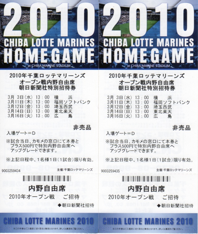 オープン戦 投稿日: 2010-03-14 06:27 愚呑 2010年のプロ野球も始まりました。 まだ、オーブン戦ですが期待通り湾岸2チームが最下位争いをしているようです。 マリーンズはバレンタインがクビになり新監督です。 新監督になっても、簡単にはチームは立ち直らないようです。 タダ券が入手出来ましたので本日参戦して参ります。 さて、応援虚しく球場を後にするのでしょうか(-_-;) 📂投稿グループ 日々楽々