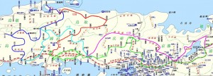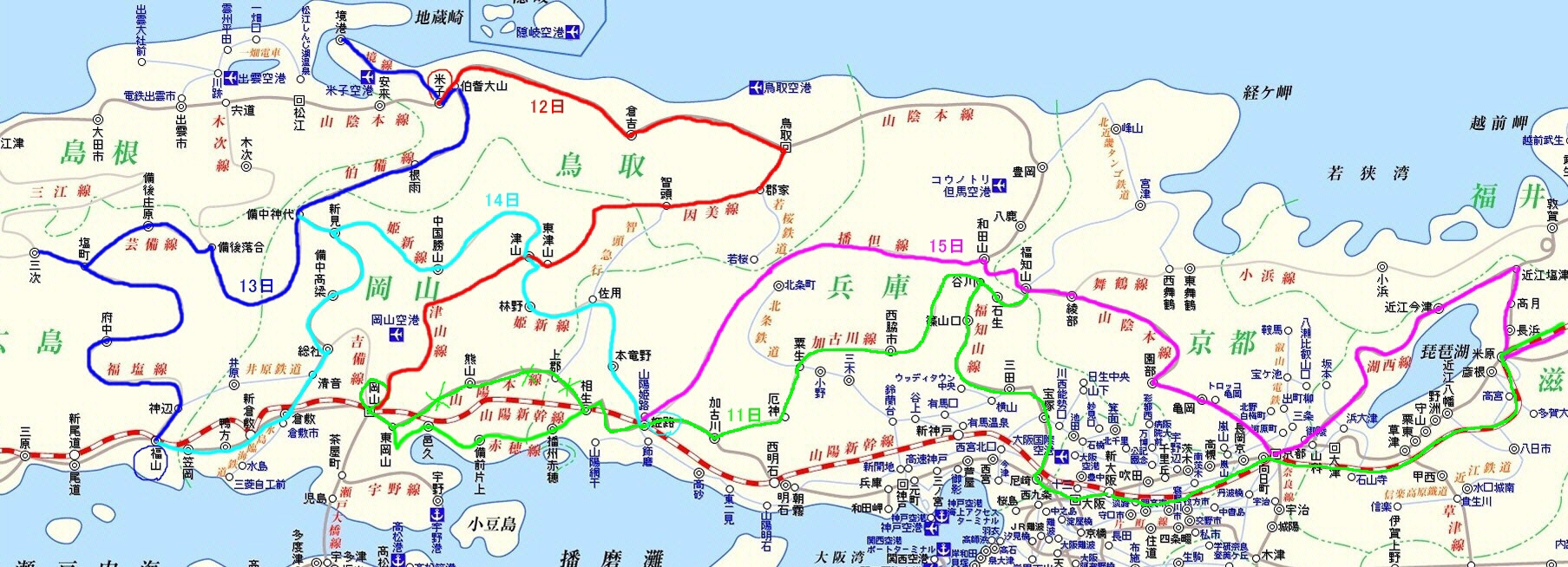 こちらは瀬戸内と山陰を結ぶ路線が入り組んでいます。