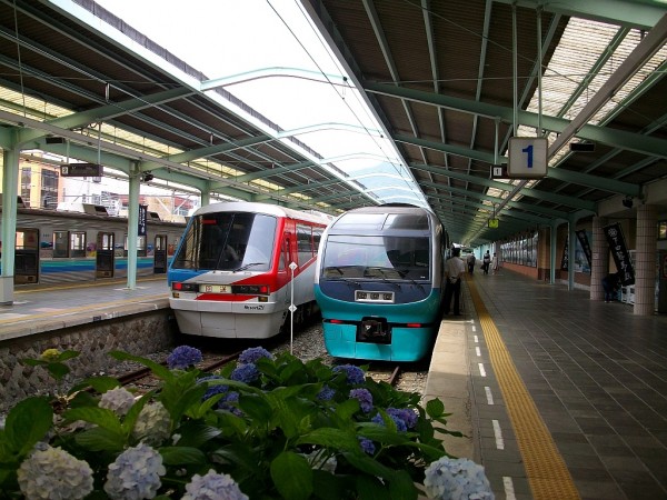 画像左が伊豆急行リゾート21、右がJR東のスーバービュー踊り子です。