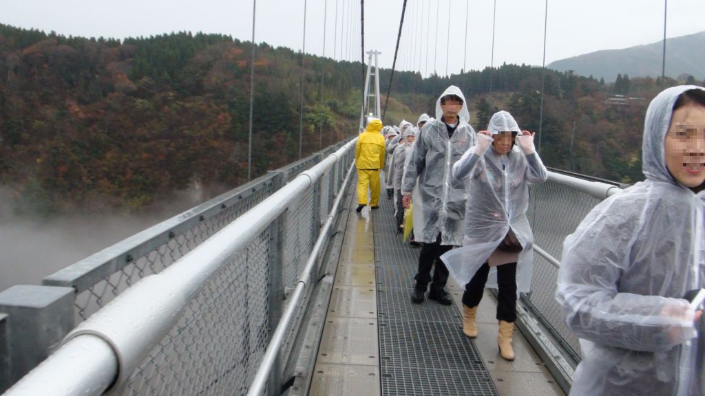 翌日は朝から雨、無いような予定を変更し、日本一の吊り橋に行ってみようと言うことになりました。