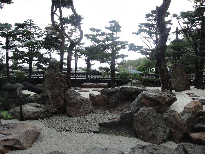ボランティアガイドさんの案内で園内を歩いていると、突然の土砂降り。