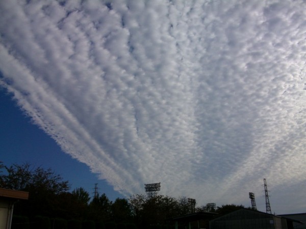 北側は真っ青な空、南側はうろこ雲とはっきり別れてなんとも言えない光景でした。