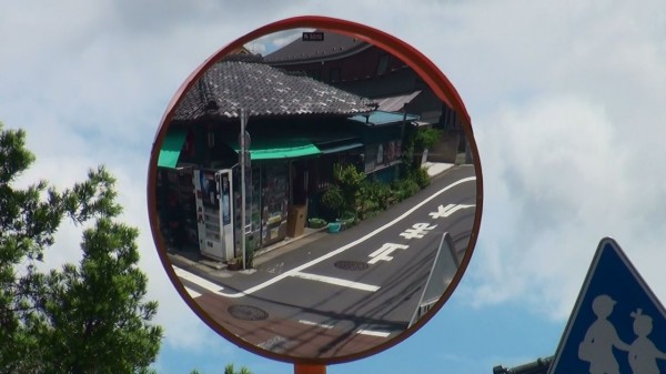 > カーブミラーの左端に本人がいますよ(笑)