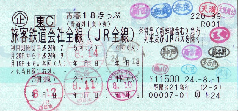 8月10日から出掛けました2012青春18きっぷ夏版、無事に終了しました。
