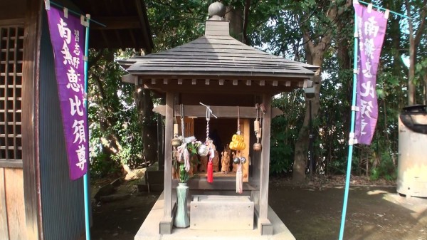風折烏帽子に狩衣を着け右手に釣り竿左腕の下に隊を挟んだお姿をしております。