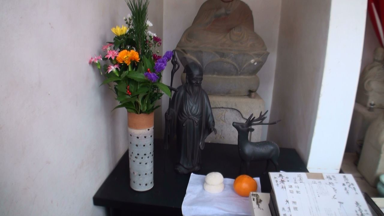 老人星の化身で中国の福寿神として祀られ、その星は寿命を司り、人々の無病息災を守護し、毎月二月上旬の夜、地平線に現れると伝えられています。