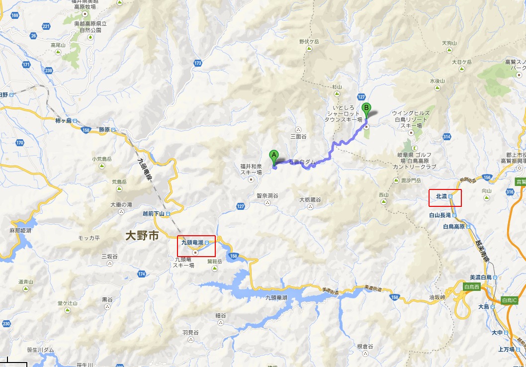 JR越美北線九頭竜湖駅から旧国鉄越美南線だった長良川鉄道北濃駅への徒歩連絡です。
