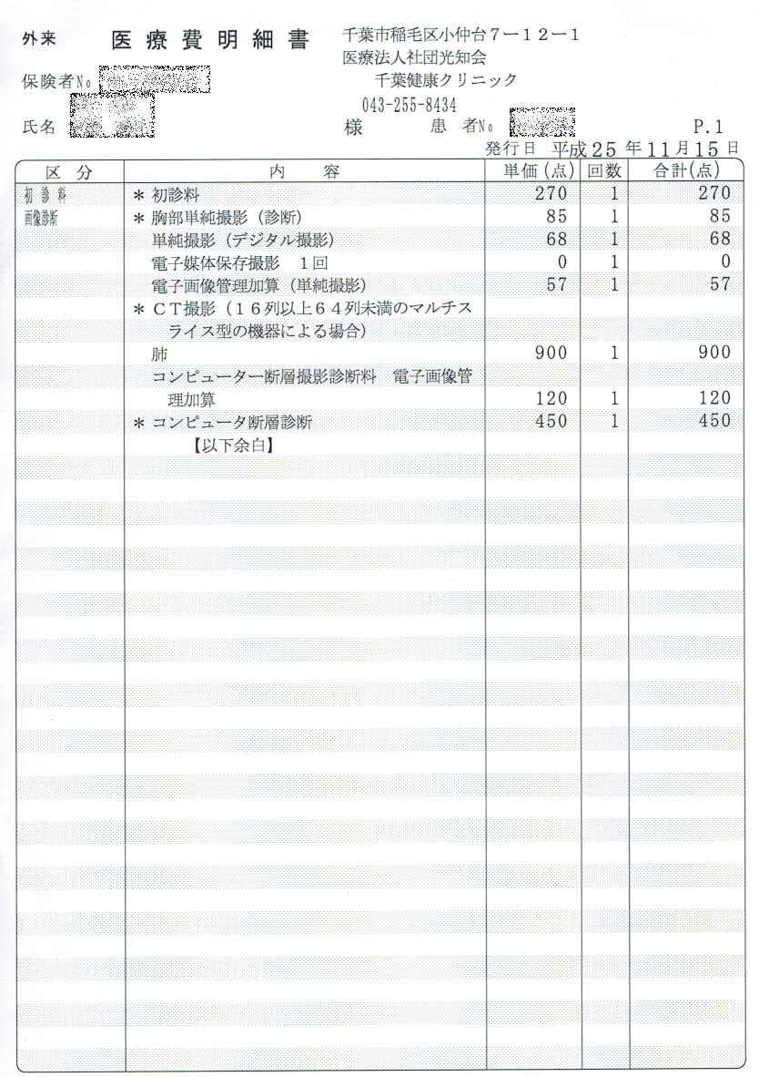 先月末に会社の定期検診にて「左上肺野に肺腫瘍の疑いあり、肺CTを受けて下さい」と問診票に記載されていました。