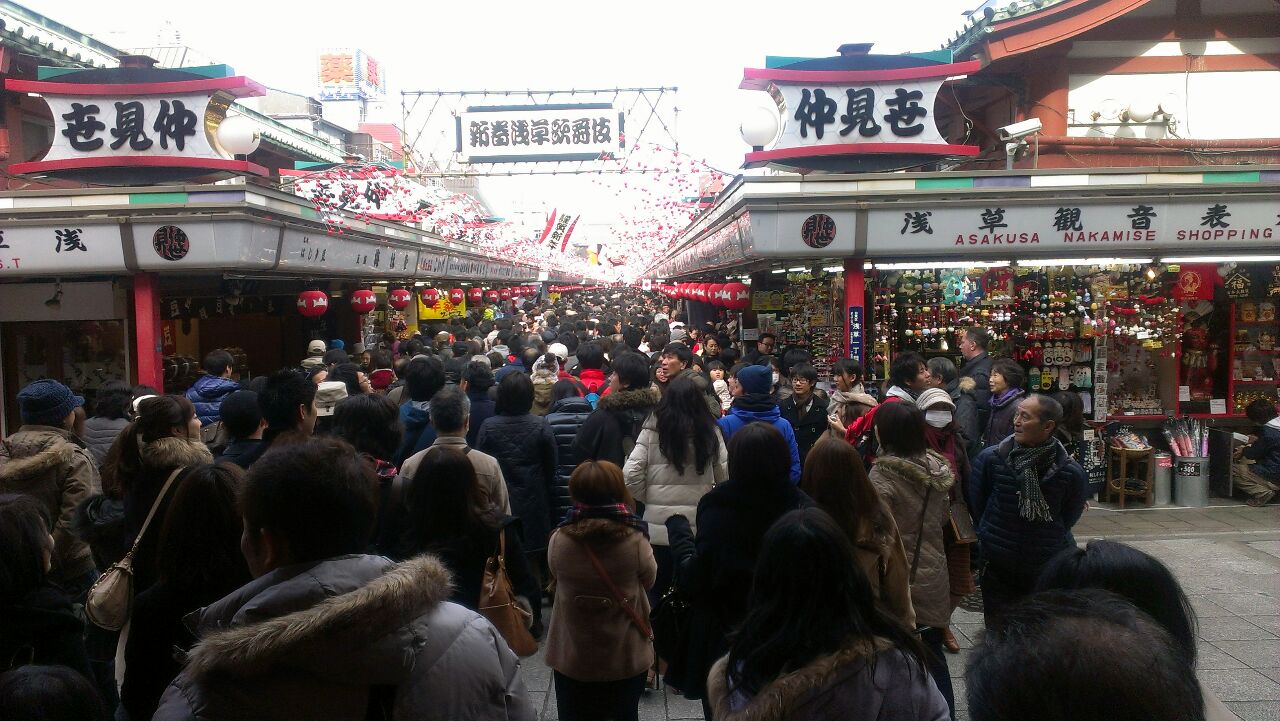 近くの検見川神社に初詣、勢いで京成電車で浅草まで来てしまった。