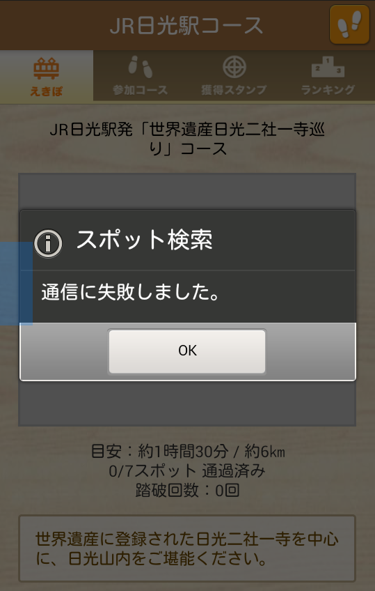 「えきぽ」の通過処理を何度もしますが、サーバー混雑か通信エラーで処理出来ません。