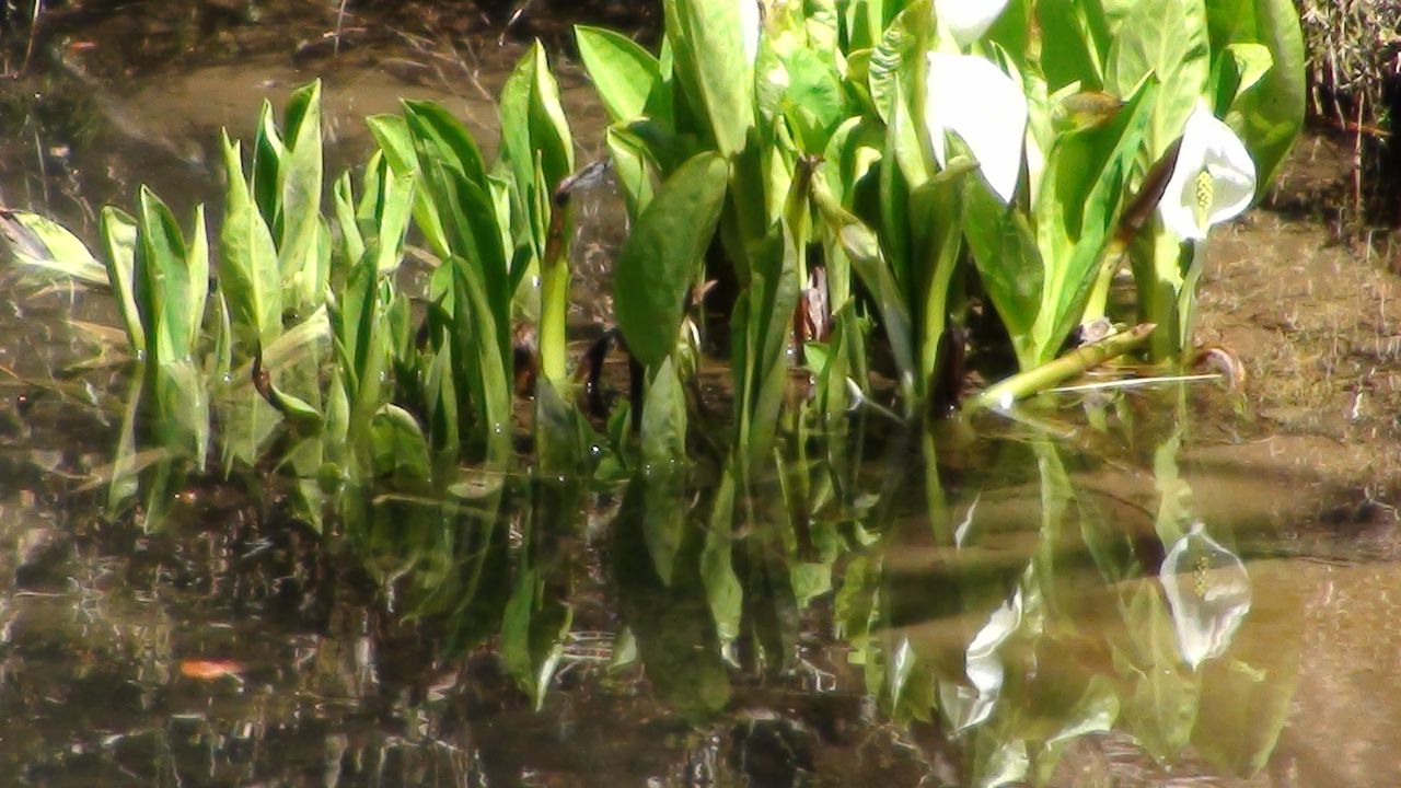 輪王寺も工事中、裏の庭をチラッと寄ってみたらミズバショウが咲いていました。