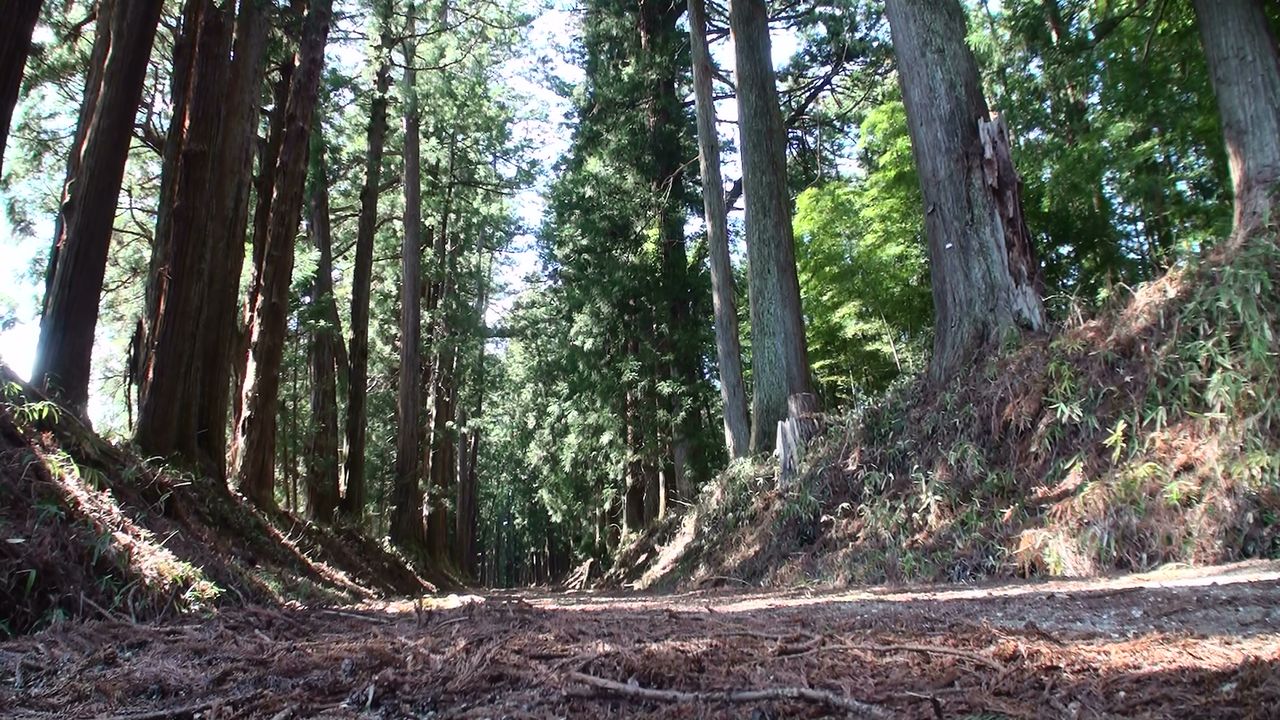 街が過ぎると杉並木が見えて来ました。この区間は車両通行止めにして保存している区間です。