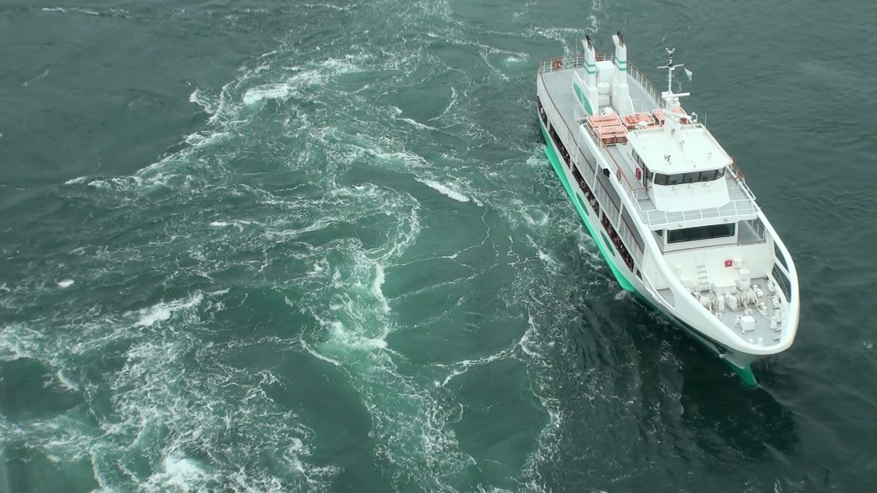 橋の下に渦潮が見えるようになっています。