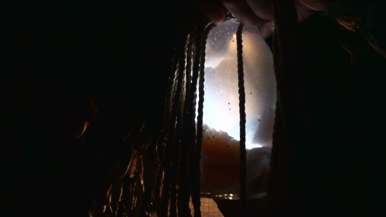 容器に点々と海ホタルがいます。