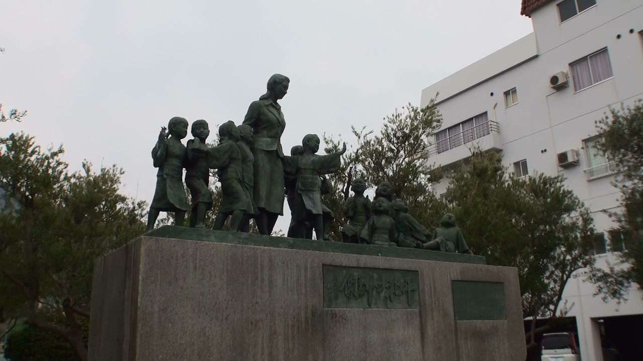 港の前に二十四の瞳の群像が立って居ます。