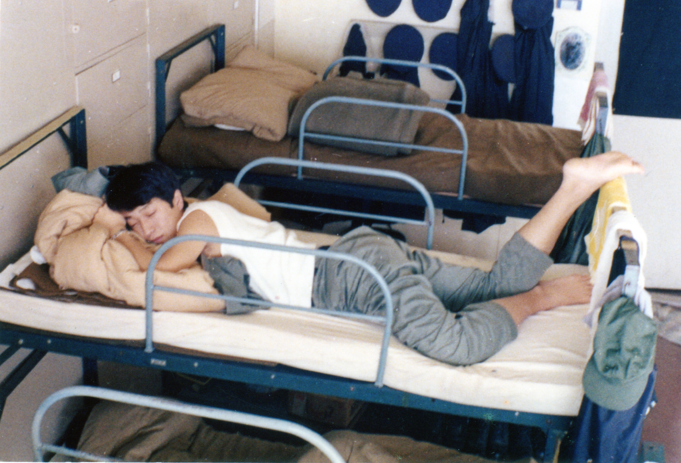 二段ベッドに横たわる姿は違う日です。(^-^;
