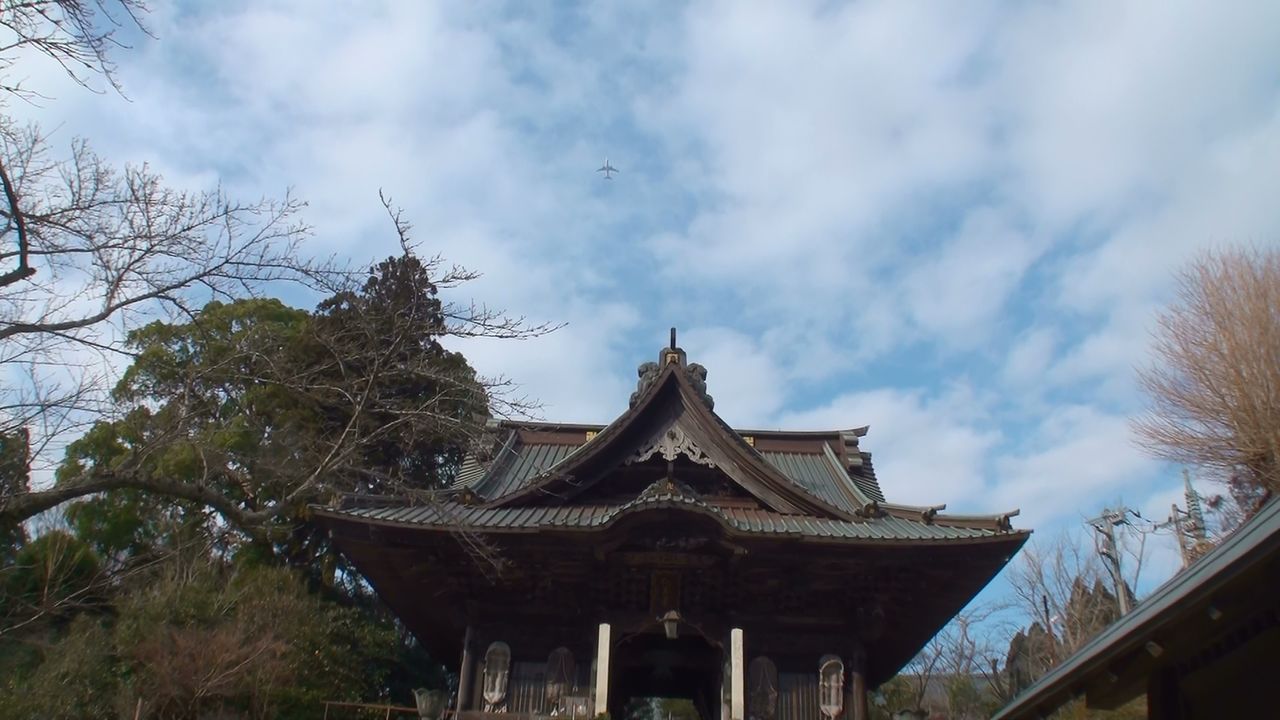 本堂の真上を成田からの航空機がひっきりなしに飛んでいました。