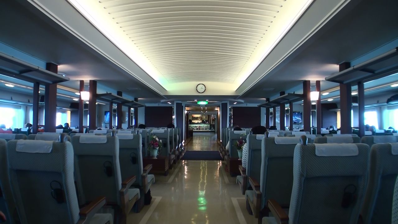 船内は快適な作りでした。が、ほとんど船内には居ませんでした。