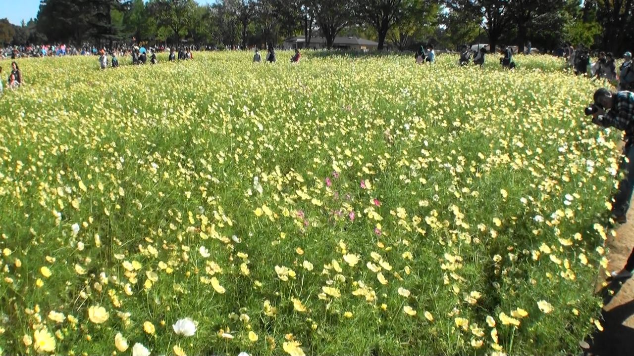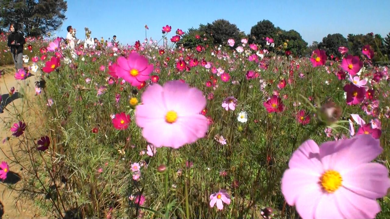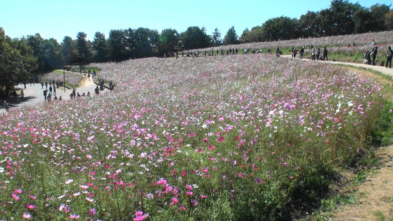 旧米軍立川基地跡地の一部に昭和50周年を記念して造られた広大な公園(180ha)で400万本のコスモスが咲いていると言うので行って来ました。