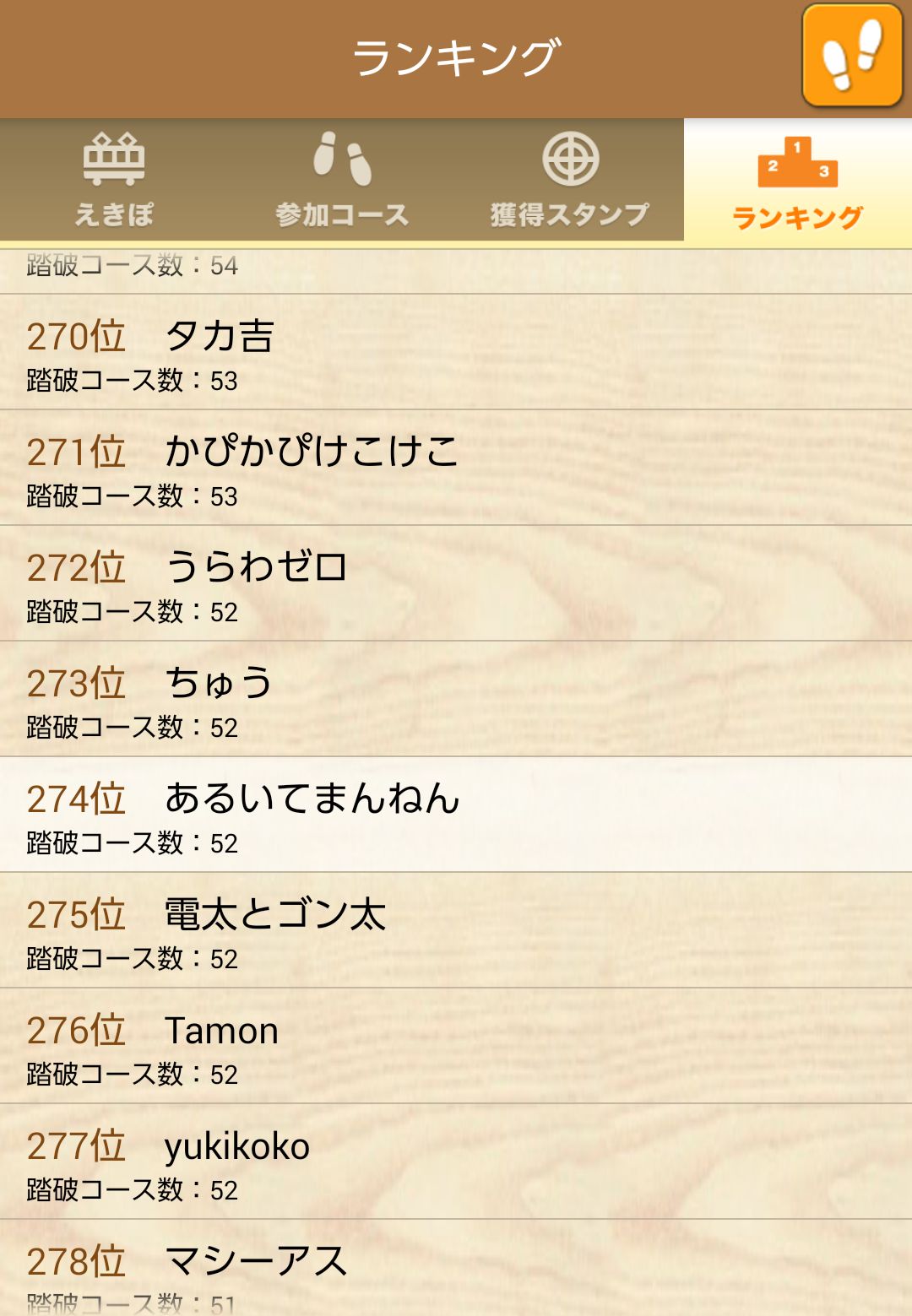えきぽランキングです。強者は1万回を超えていました。1年毎日歩いても365回、10年で3,650回、何でこんな数字になるのだろう?