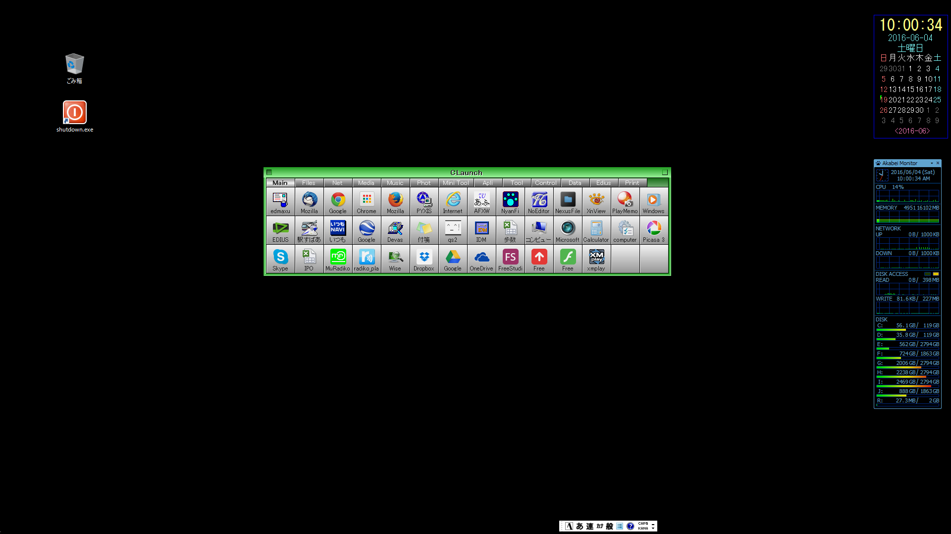 通常、デスクトップに不要なアイコンは一切置いていません。ランチャーで起動するようにしています。