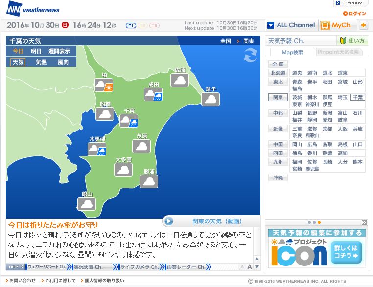 気象庁天気予報 投稿日: 2016-10-30 16:18 愚呑 最近の天気予報、全く当たりませんね。 当たらないと言うより、もうデタラメだ。 台風もスゲーのが来るぞ、来るぞと言うと、そよ風で終わったり。 もう、狼少年と同じで、信用出来ないね。 気象庁http://www.tenki.jp/ の本日の予報はこれ 結果は朝からこれ まあ、ぬけぬけと平気で☀が出せるよな、ライブカメラがあるんだろ、見ろよ(`×´) プンプン!! で、ウェザーニューズ社で見てみた。 当たってますね。これから天気予報はこっちだな(^_^) 📂投稿グループ 日々楽々