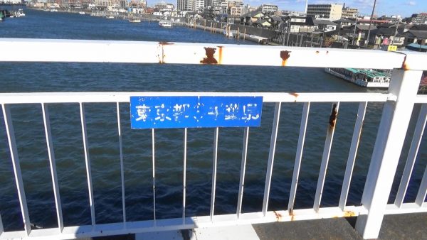旧江戸川沿いに浦安駅を目指します。眩しいので振り返ります。