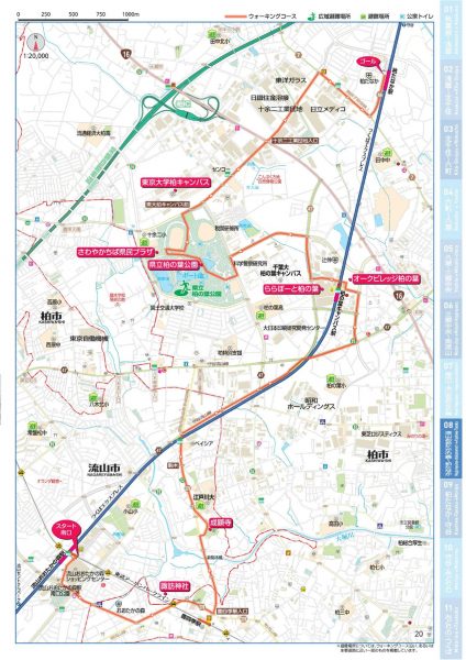 今日は流山おおたかの森駅から柏たなか駅まで歩きました。