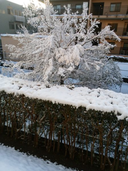 雪国の人に大雪なんて言うと笑われますが、なんと車の上には20Cmほどの雪が積もっていました。