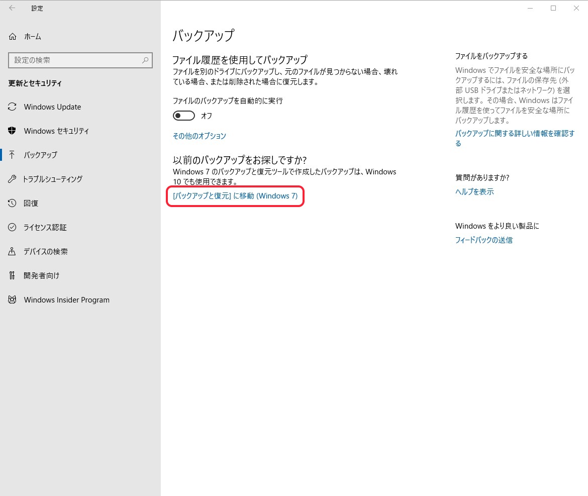 「Windows標準のバックアップ」の方法とは、前段の方法なのでしょうか?