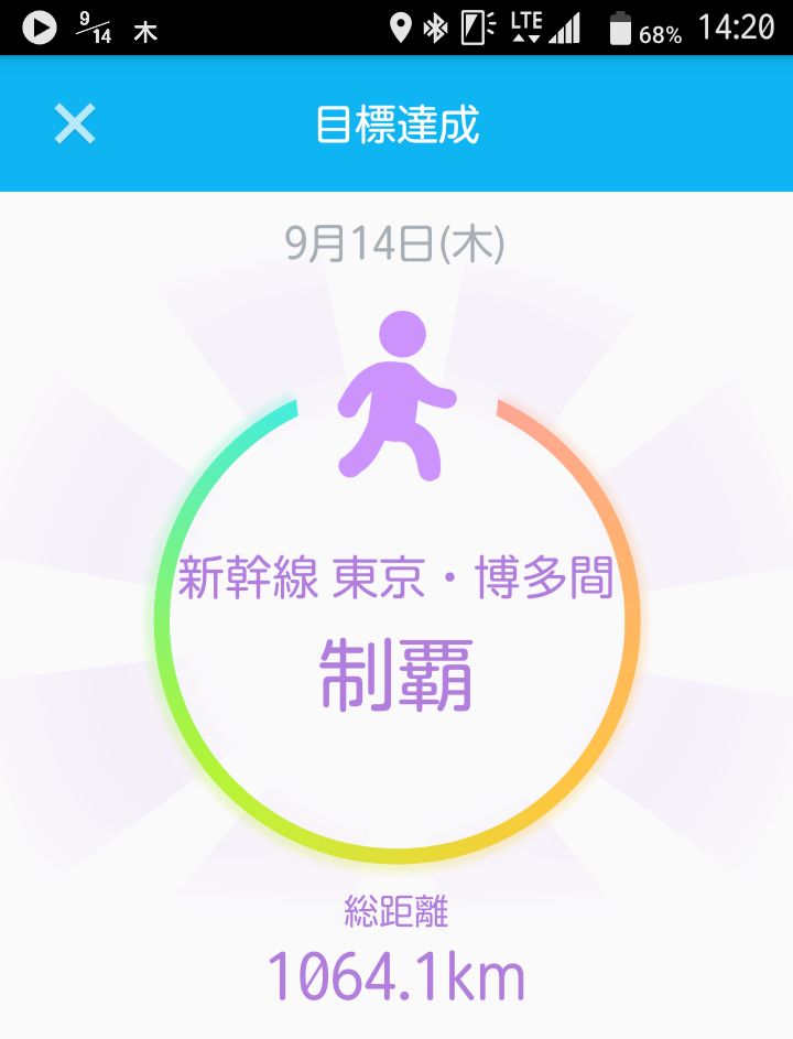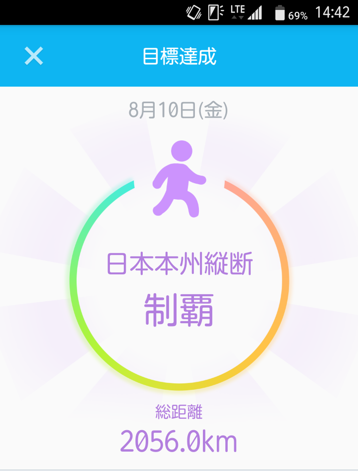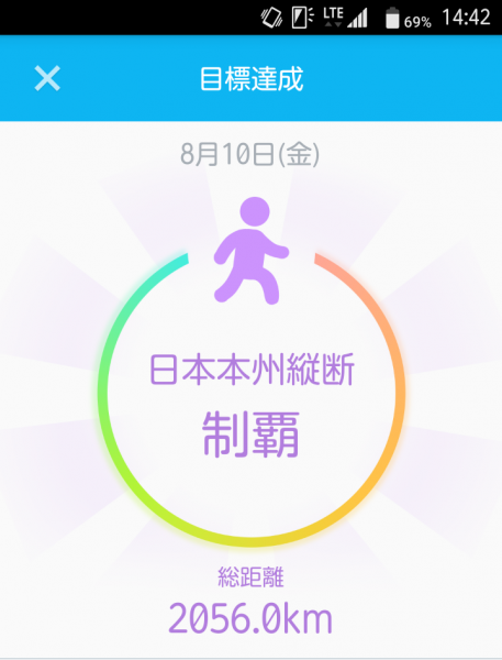 約11ヶ月掛かりました。日々通勤で歩いていたときの年間最高距離は2,600kmなので、最速10ヶ月で達生出来ましたね。