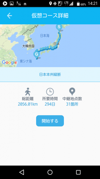 現在のスマホにしたのが2年前の9月、スマホの万歩計アプリに仮想コースを歩くと言うものがあります。