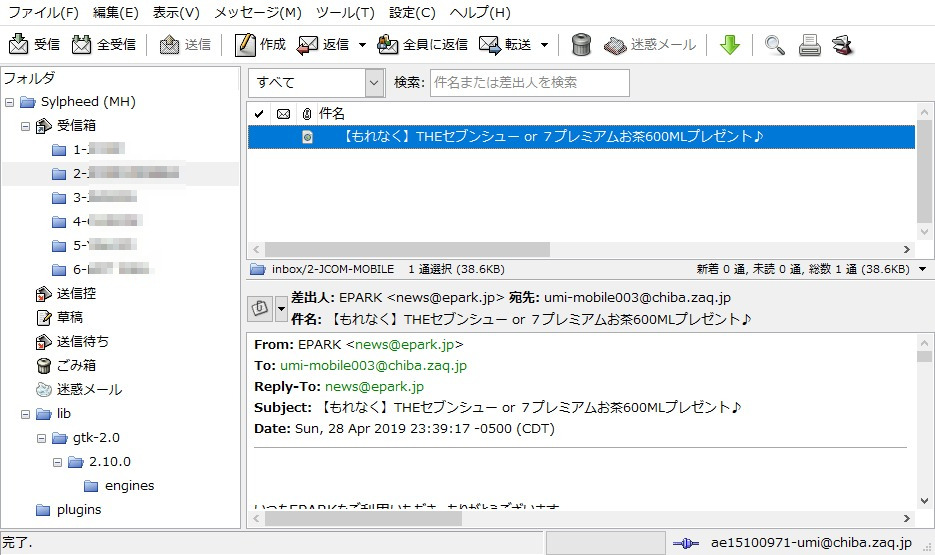 メール送受信にメールソフトの「sylpheed」を利用しています。