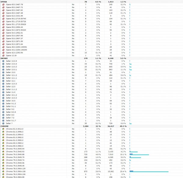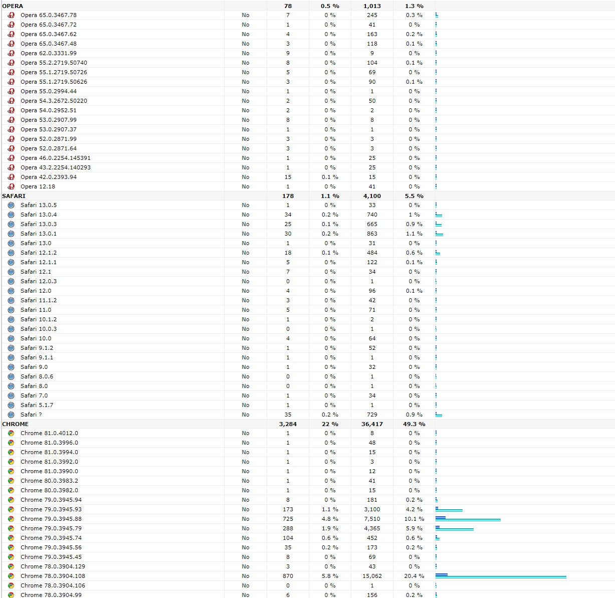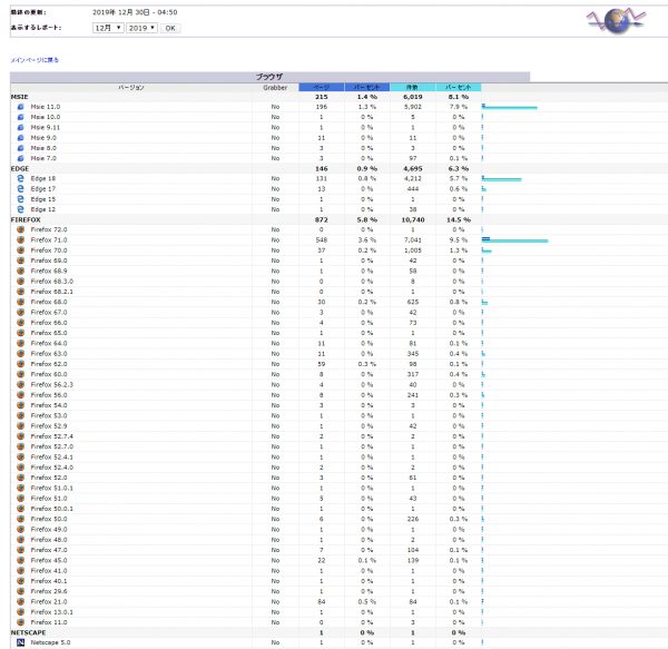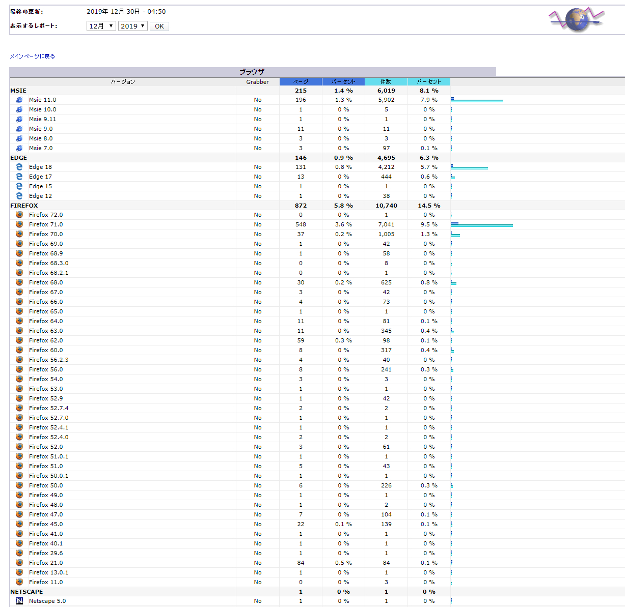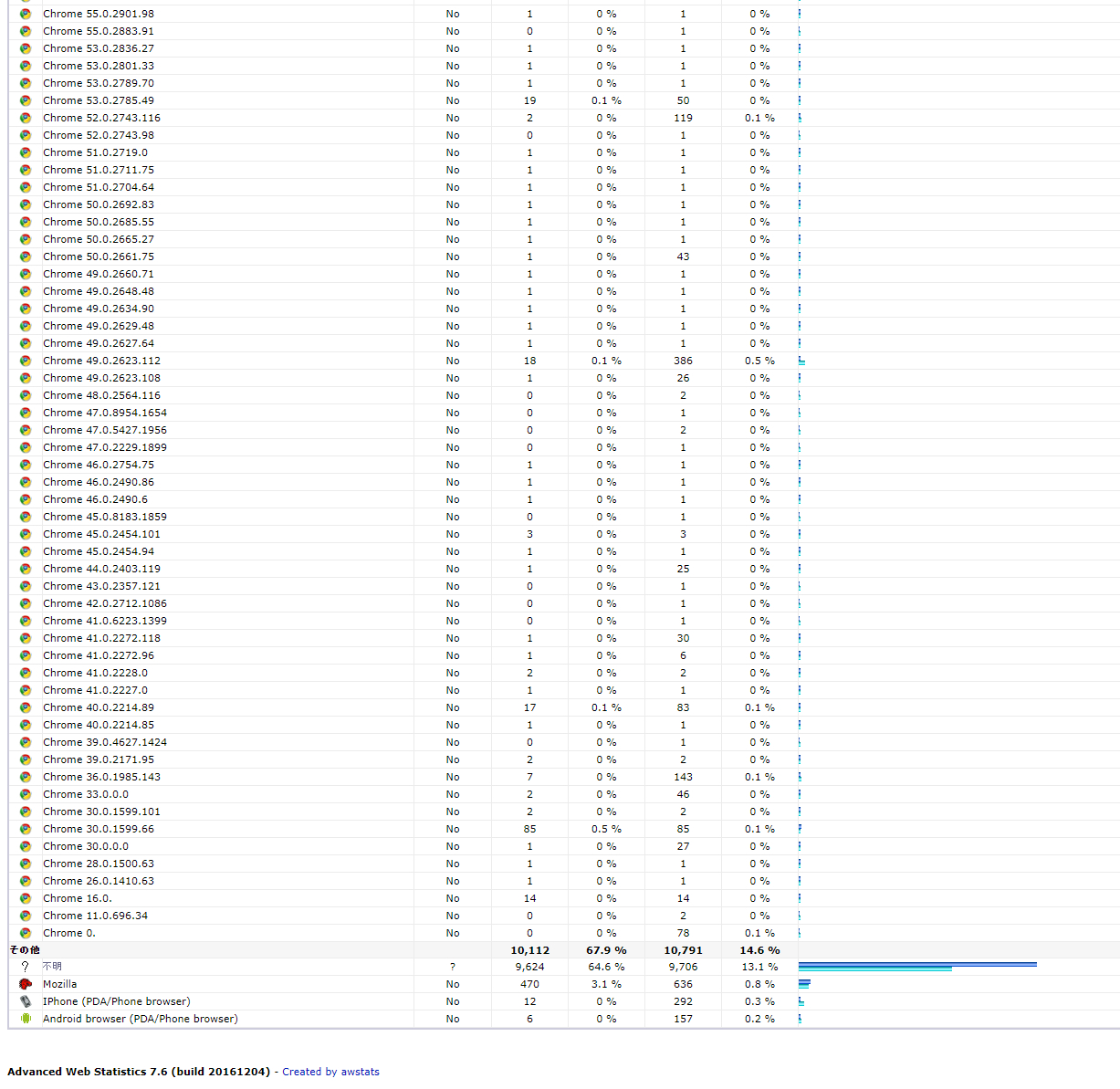 当サイトを訪れている方の使用ブラウザ一覧です。