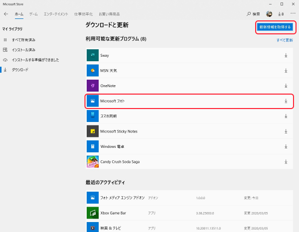 Photosが更新対象になっていました。Windows10になり、Storeで更新などするのは初めてでした。