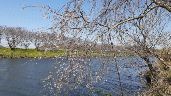 もうちょいかな 投稿日: 2020-03-20 10:06 愚呑 いつも歩く花見川の遊歩道、昨日はいつもの反対側に歩き、1.5kmほど続く土手沿いの桜を観に行きました。 右側が桜並木です。 全く咲いていませんでした。 土手の反対側に枝垂れ桜が咲いていました。 📂投稿グループ 日々楽々