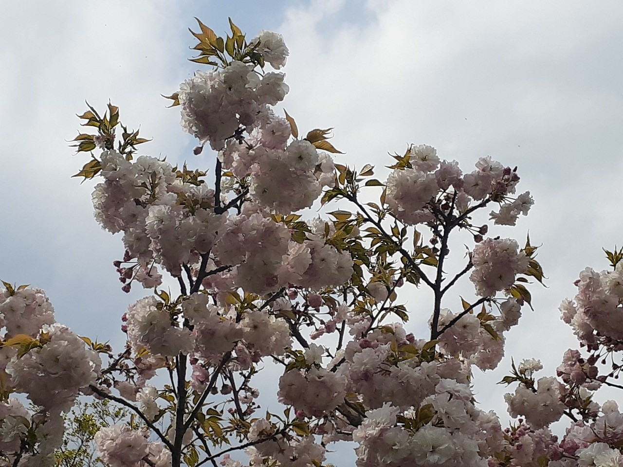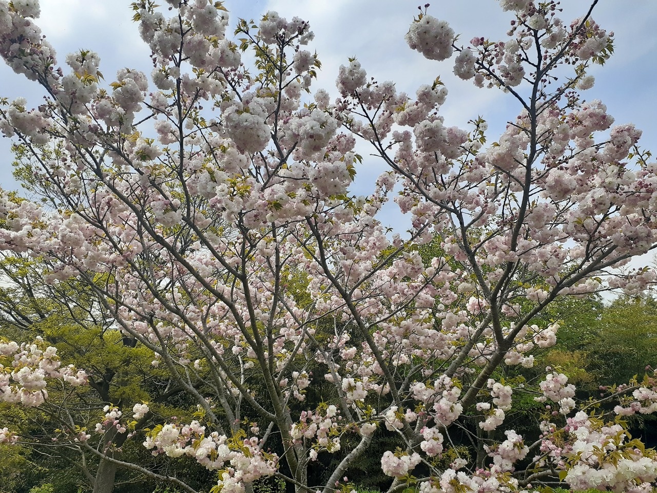サトザクラの品種で「松月(ショウゲツ)」と言うらしいです。 いろいろな桜がありますね。