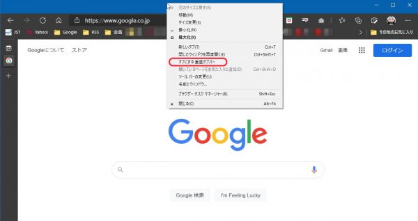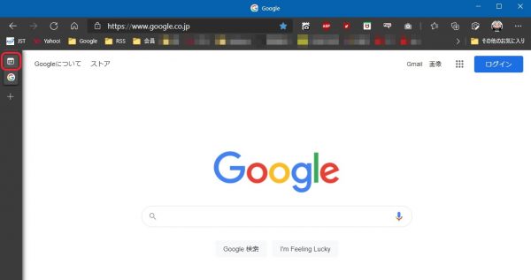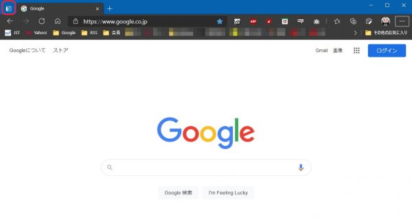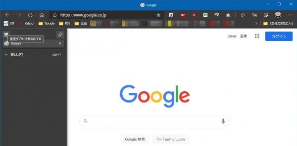 久しぶりにMicrosoftEdgeを開いたら、いつも上に表示されているタブバーがありません。どこへ行ったと探していたら横にいました。