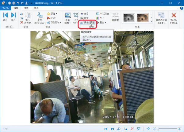 画像の傾き修正に、いつもはWindows7で入れたWindows Live Photo Galleryを利用しています。