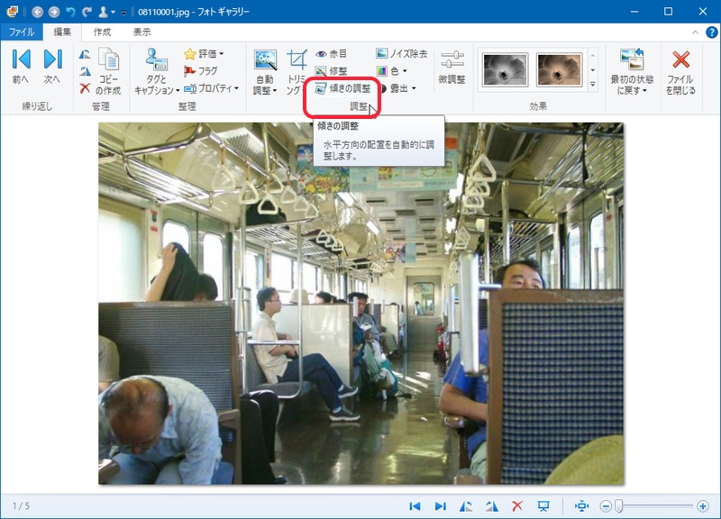 画像の傾き修正に、いつもはWindows7で入れたWindows Live Photo Galleryを利用しています。